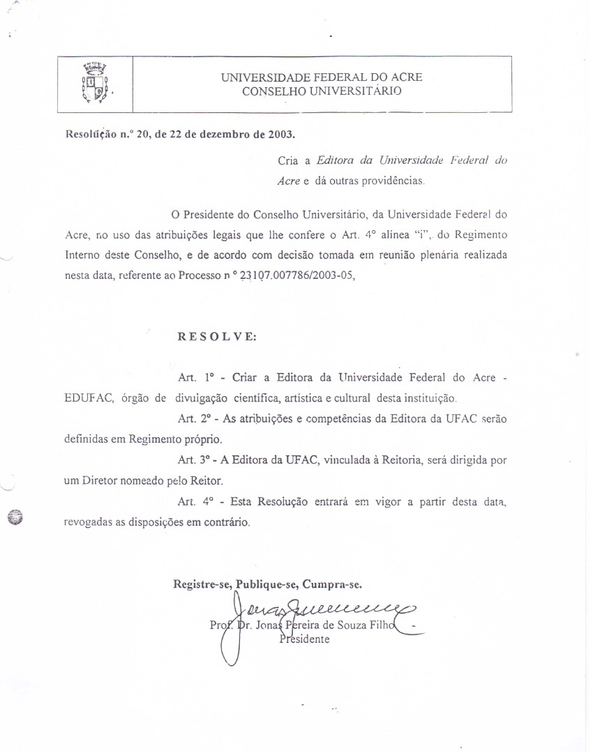 Resolução nº 20 de 22 de dezembro de 2003 (Criação da Edufac).