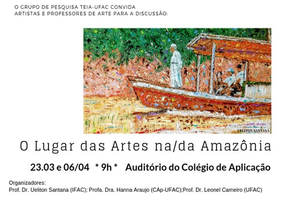O grupo de pesquisa de Tecnologias Educacionais para a Amazônia (TEIA-UFAC) convida todos os professores e estudantes de artes e interessados para discutir "O lugar das Artes na/da Amazônia".