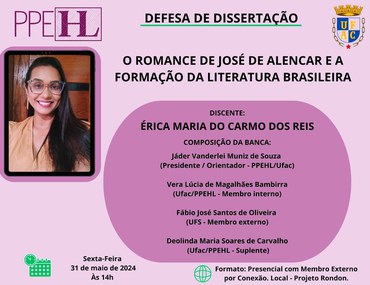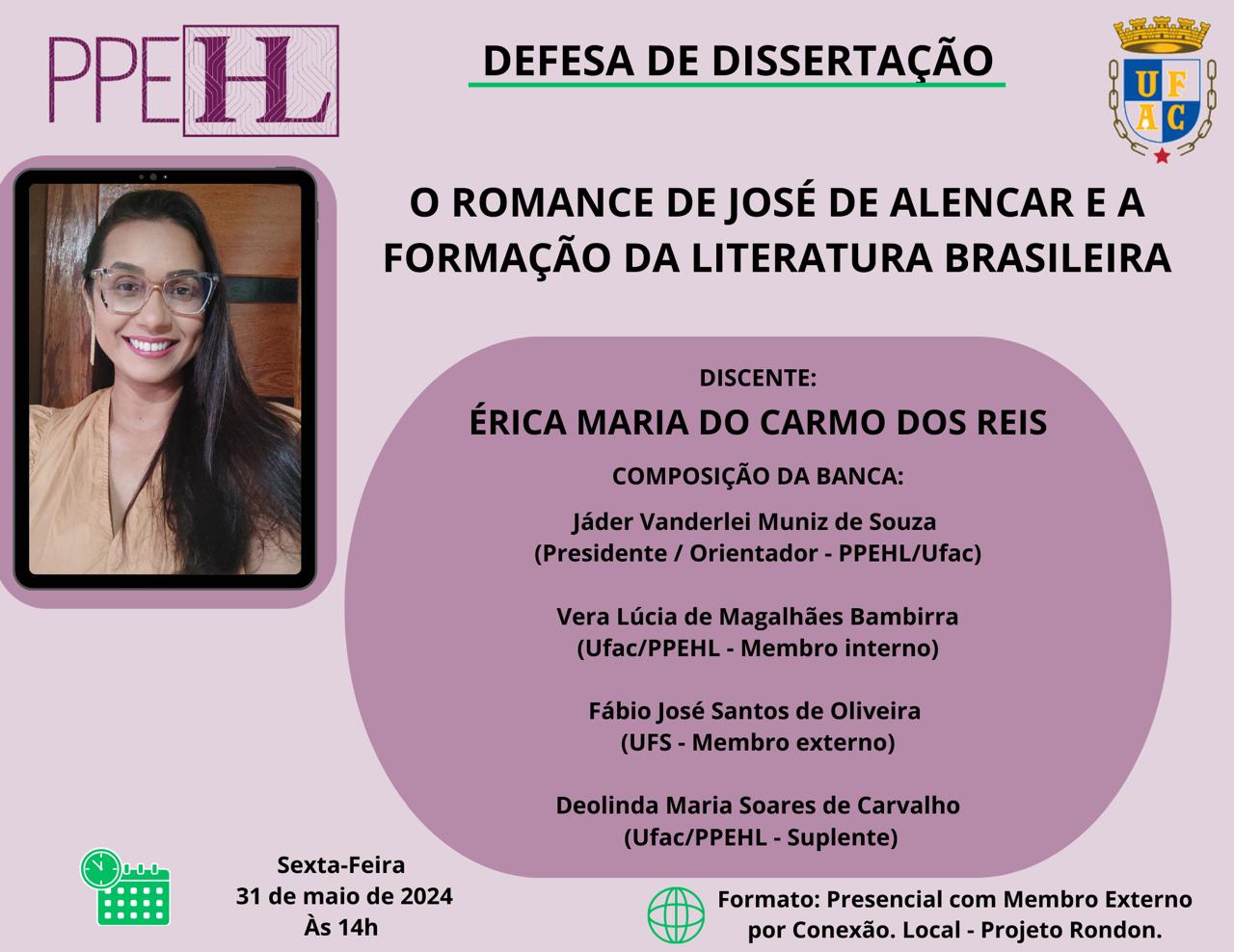31 de maio de 2024 - Defesa de Dissertação da Mestranda Érica Maria do Carmo dos Reis